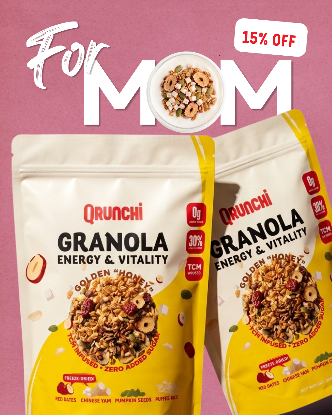 Work smarter, not harder. Adding TCM goodness to your daily granola gives you long-term wins with zero extra effort. One bowl, and boom — your wellness routine just levelled up ,🚀